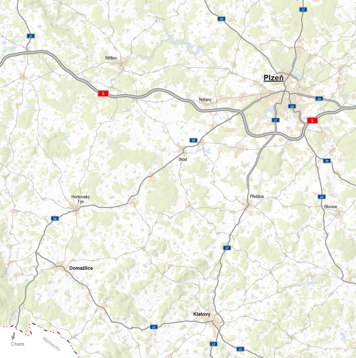 Silnice I/26 propojuje Plzeň a Plzeňský kraj s Bavorskem.
